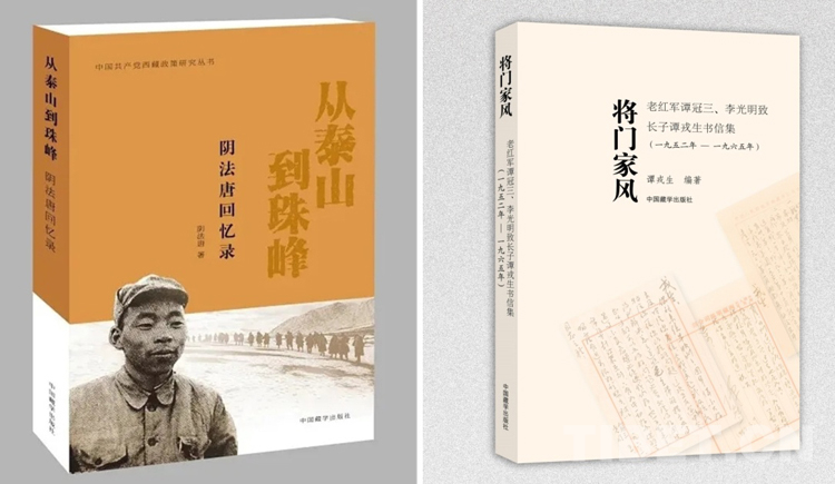 圖為西藏自治區(qū)黨委原書記陰法唐的回憶錄《從泰山到珠峰》和開國中將譚冠三寫給長子譚戎生的家書集《將門家風(fēng)》書影