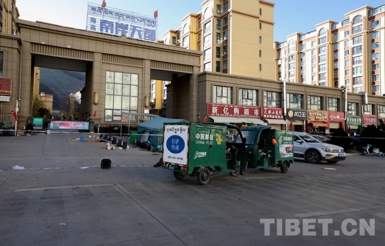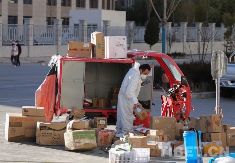 中國西藏網(wǎng)訊 隨著拉薩市疫情防控形勢整體持續(xù)向好,目前拉薩市郵政快遞業(yè)在落實好常態(tài)化疫情防控工作的基礎上,正有序復工復產(chǎn)。圖為快遞員無接觸配送快遞 攝影:賈華加(中國西藏網(wǎng) 記者/賈華加)