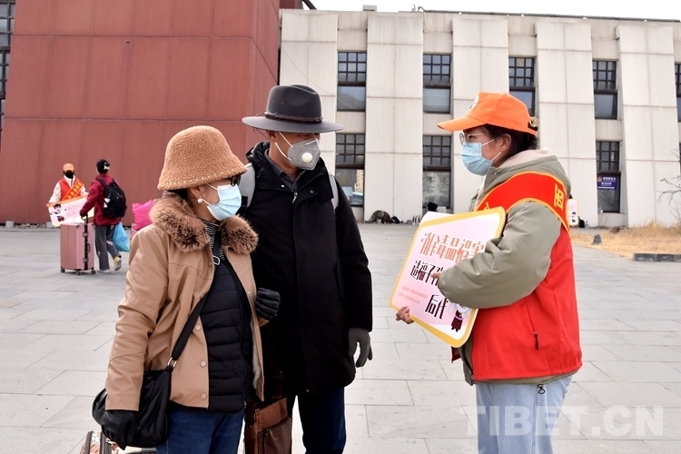 圖為活動(dòng)現(xiàn)場(chǎng)志愿者向旅客宣講禁毒知識(shí) 攝影:次旦拉姆