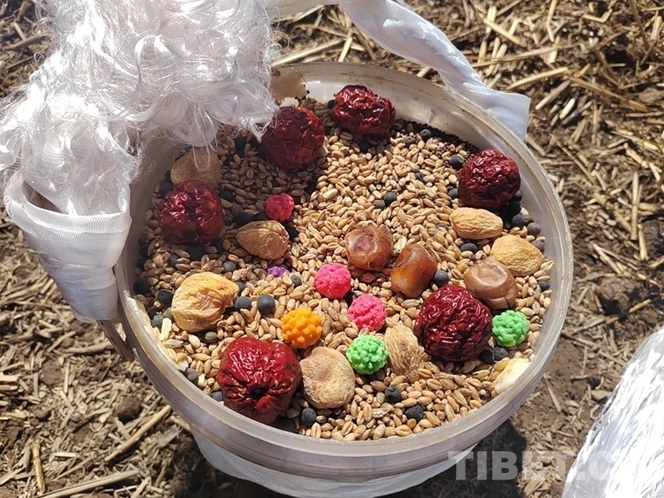圖為唐嘎村春耕儀式現(xiàn)場,即將播撒的種子 攝影:次旦拉姆