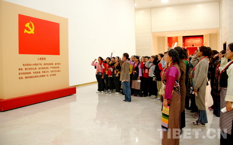 圖為“2023年西藏基層婦聯(lián)干部赴京學(xué)習(xí)參觀團(tuán)”成員們在中國共產(chǎn)黨歷史展覽館重溫入黨誓詞 攝影:劉莉