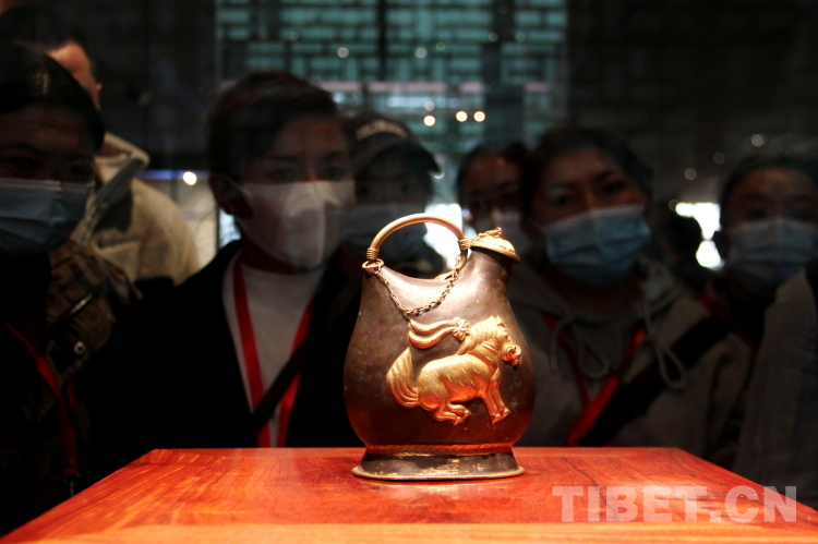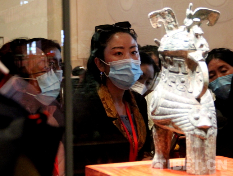 圖為2023年西藏基層婦聯(lián)干部赴京學(xué)習(xí)參觀團(tuán)成員們在中國工藝美術(shù)館·中國非物質(zhì)文化遺產(chǎn)館內(nèi)欣賞唐代文物鎏金舞馬銜杯紋銀壺的復(fù)制件 攝影:劉莉
