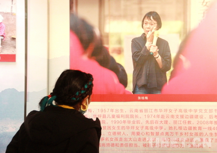 在眾多參觀展覽的人群中,有一位身著藏裝的西藏基層?jì)D聯(lián)干部,十分醒目,她總是笑意盈盈,用手機(jī)拍攝記錄著展覽的重點(diǎn),時(shí)不時(shí)與同伴分享心得。她叫索朗德吉,是來自西藏自治區(qū)林芝市工布江達(dá)縣江達(dá)鄉(xiāng)太昭村的婦聯(lián)主席,“通過觀看展覽,我系統(tǒng)了解到,百年來,我們黨始終堅(jiān)持把實(shí)現(xiàn)婦女解放和發(fā)展、實(shí)現(xiàn)男女平等寫在自己奮斗的旗幟上?,F(xiàn)在的西藏,男女平等,婦女也能當(dāng)領(lǐng)導(dǎo),在工作崗位上展現(xiàn)著‘婦女能頂半邊天’的巾幗力量。這事兒如果放到舊西藏,那是想都不敢想的?!彼骼实录f,“在中國共產(chǎn)黨的領(lǐng)導(dǎo)下,我們村早已發(fā)展成為天上有航線,地面有鐵路,生活富裕的小康村,聽黨話、跟黨走是太昭人不變的信念,回去后我要把聽到的、看到的、學(xué)到的,不光講給村里人,更要講給縣里人,激發(fā)出她們的民族自豪感,共同澆灌民族團(tuán)結(jié)的參天大樹?!?/p>