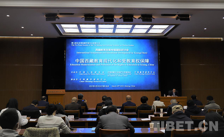中國(guó)西藏網(wǎng)訊 3月28日,第七屆北京國(guó)際藏學(xué)研討會(huì)前期分會(huì)—西藏教育發(fā)展專(zhuān)題國(guó)際研討會(huì)在北京舉行。會(huì)議以“中國(guó)西藏教育現(xiàn)代化和受教育權(quán)保障”為主題,由中國(guó)人權(quán)研究會(huì)、中國(guó)西藏文化保護(hù)與發(fā)展協(xié)會(huì)、中國(guó)藏學(xué)研究中心共同主辦,中國(guó)藏學(xué)研究中心承辦。研討會(huì)由中國(guó)藏學(xué)研究中心總干事鄭堆主持,國(guó)內(nèi)外有關(guān)專(zhuān)家學(xué)者60余人以線上線下相結(jié)合的方式參會(huì)。中國(guó)人權(quán)研究會(huì)副秘書(shū)長(zhǎng)王琰文,中國(guó)西藏文化保護(hù)與發(fā)展協(xié)會(huì)副秘書(shū)長(zhǎng)林建,中國(guó)藏學(xué)研究中心副總干事廉湘民、李德成出席。