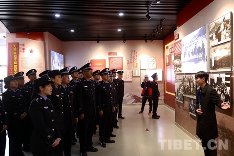 圖為西藏邊檢總站執(zhí)法調(diào)查支隊民警在烈士紀(jì)念館瞻仰烈士英雄事跡