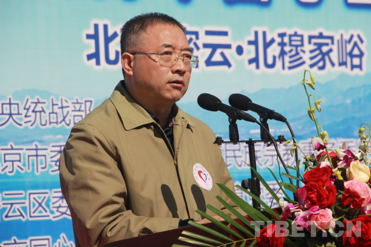圖為北京市委統(tǒng)戰(zhàn)部副部長(zhǎng)、北京社院黨組書記、常務(wù)副院長(zhǎng)呂仕杰在“同心造林·共鑄健康”“同心·共鑄中國(guó)心”2023年同心林植樹和義診活動(dòng)啟動(dòng)儀式上致辭 攝影:劉莉