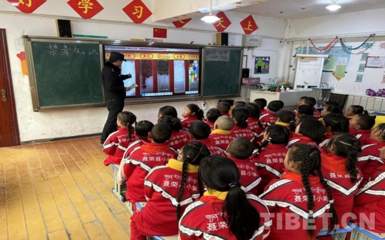 圖為那曲市當(dāng)木江鄉(xiāng)組織學(xué)生講解禁毒常識(shí)