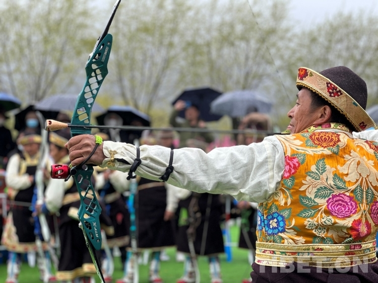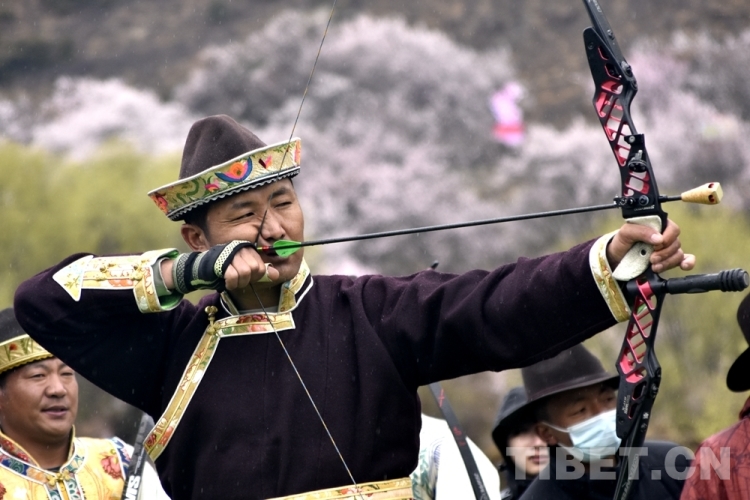 圖為西藏林芝百姓參加工布響箭比賽 攝影:次旦拉姆