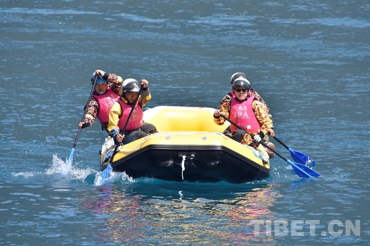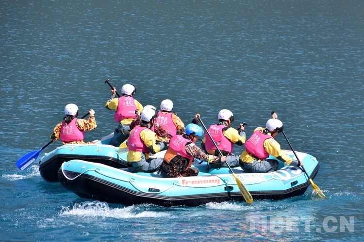圖為4月15日,200米靜水漂流筏排位賽比賽現(xiàn)場(chǎng) 攝影:次旦拉姆