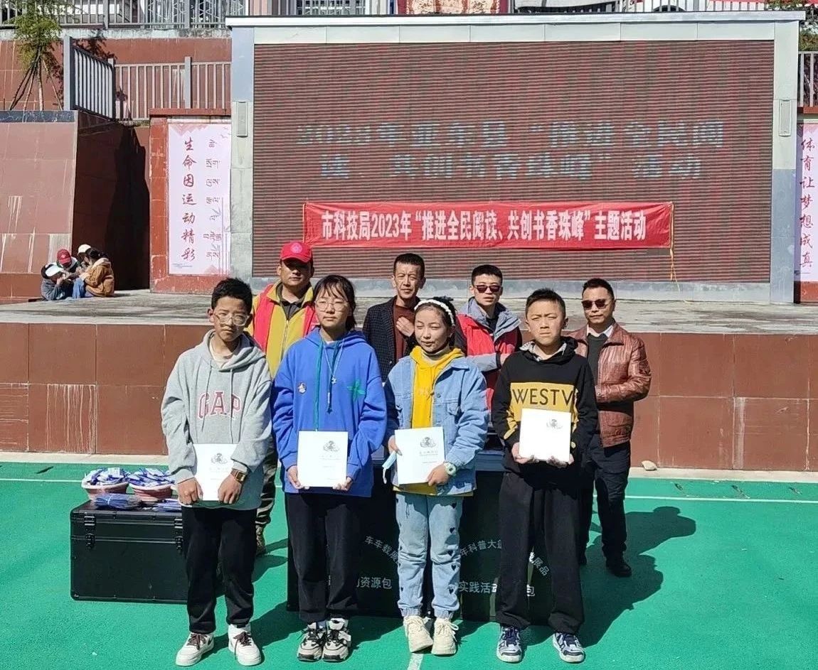 圖為日喀則市科學技術協(xié)會以科普大篷車進校園活動為契機,聯(lián)合亞東縣委宣傳部、縣科技局在縣中學舉辦的“推進全民閱讀 共創(chuàng)書香珠峰”主題宣傳活動現(xiàn)場
