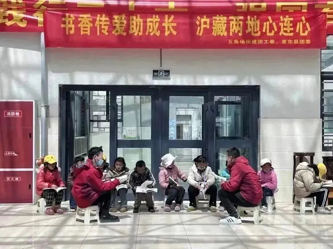 圖為亞東縣團縣委組織西部志愿者赴堆納鄉(xiāng)小學開展“書香傳愛助成長,滬藏兩地心連心”校園讀書節(jié)活動暨上海五角場街道團工委公益捐書儀式現(xiàn)場