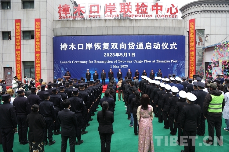 圖為樟木口岸恢復(fù)雙向貨通儀式現(xiàn)場 攝影:鄒興國