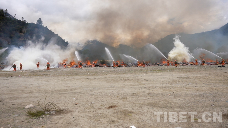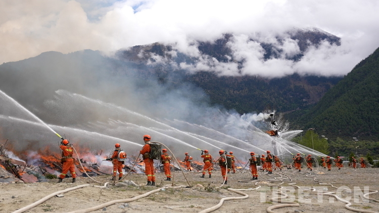 圖為林芝市森林消防支隊(duì)救援人員在“應(yīng)急使命·西藏2023”抗震救災(zāi)實(shí)戰(zhàn)化演習(xí)中撲打火線。