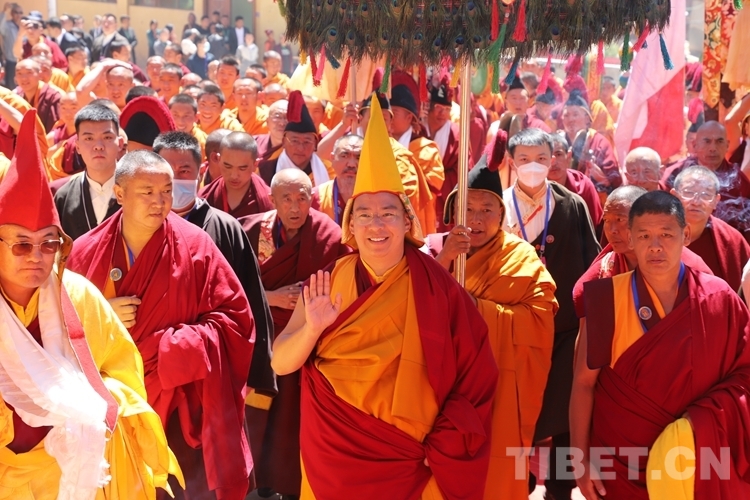 圖為班禪向僧眾揮手致意 攝影:賈華加