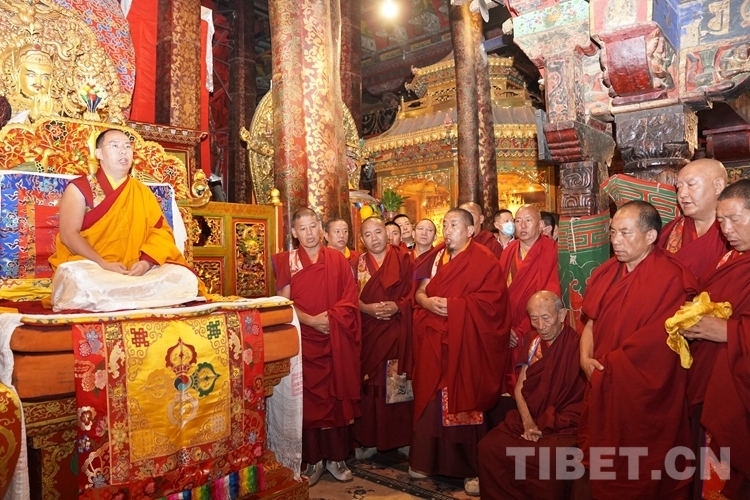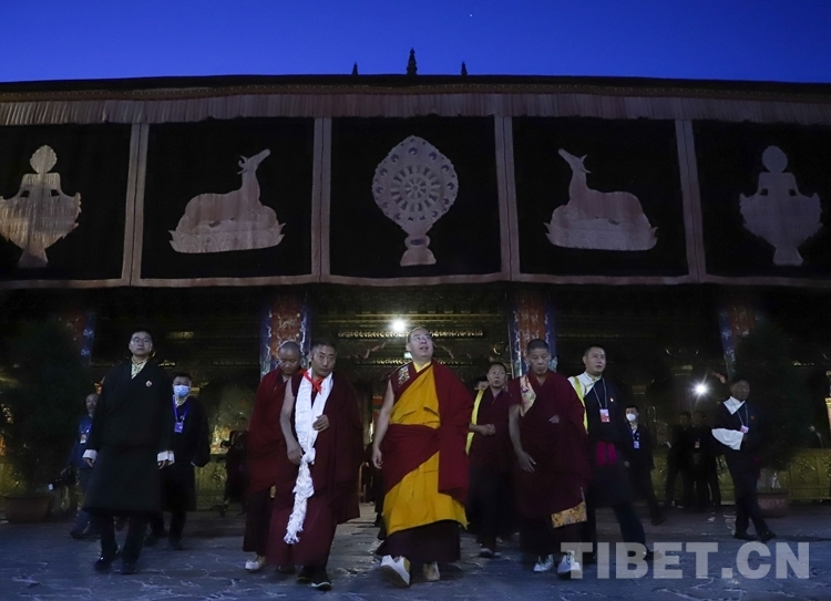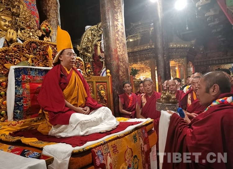 中國(guó)西藏網(wǎng)訊 6月25日凌晨,全國(guó)政協(xié)常委、中國(guó)佛教協(xié)會(huì)副會(huì)長(zhǎng)、中國(guó)佛教協(xié)會(huì)西藏分會(huì)會(huì)長(zhǎng)班禪額爾德尼·確吉杰布在拉薩大昭寺朝拜釋迦牟尼佛像,并為大昭寺僧眾摸頂賜福。