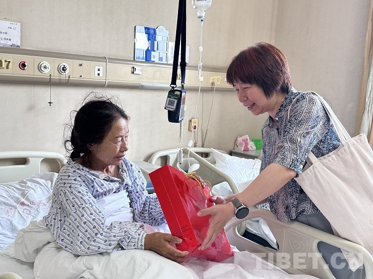圖為中國(guó)社科院民族所副所長(zhǎng)丁賽同志看望西藏來京接受治療的患者 攝影:趙越
