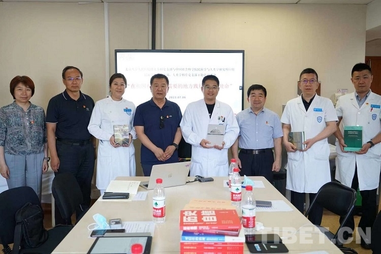 中國(guó)西藏網(wǎng)訊 主題黨日活動(dòng)是加強(qiáng)黨的基層組織制度建設(shè)的重要抓手,是加強(qiáng)黨員黨性教育的重要方式,是提升基層黨組織生活活力的主要途徑。如何開展好主題黨日活動(dòng),是全黨上下各支部一直在認(rèn)真思考的一項(xiàng)政治任務(wù)。在民族團(tuán)結(jié)工作領(lǐng)域,開展好符合新時(shí)代特征的主題黨日活動(dòng),既是共產(chǎn)黨員踐行初心與使命的基本要求,也是探索鑄牢中華民族共同體意識(shí)工作的新方向。2023年7月6日,中國(guó)社會(huì)科學(xué)院民族學(xué)與人類學(xué)研究所的應(yīng)用民族學(xué)研究室和學(xué)會(huì)聯(lián)合黨支部、人類學(xué)研究室和學(xué)會(huì)聯(lián)合黨支部來到北京大學(xué)人民醫(yī)院骨關(guān)節(jié)科黨支部,與正在該醫(yī)院接受大骨節(jié)病手術(shù)治療的藏族同胞一起開展了一場(chǎng)以“在祖國(guó)和人民最需要的地方踐行初心與使命”為主題的黨日活動(dòng)。