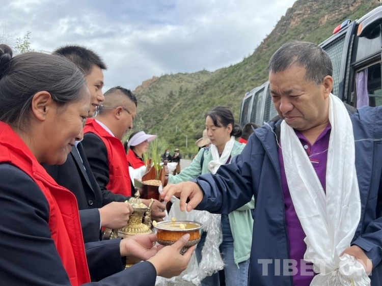 “專家們這幾天不辭辛勞,克服種種困難深入我們洛隆縣各鄉(xiāng)鎮(zhèn)為群眾們送醫(yī)送藥送健康,群眾們反響很好。我們所做的工作就是為人民服務(wù),讓人民群眾感受到黨的關(guān)心,非常感謝您們的到來,歡迎下次再來。”昌都市政府副市長,洛隆縣委書記解文光在歡送儀式上向?qū)<覀兙传I哈達,表達感謝。