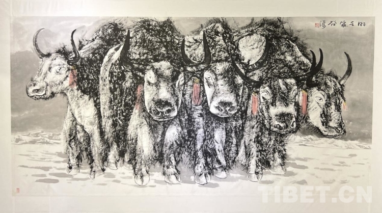據了解,汪仕民先生,在西藏生活了三十余年,從事專業(yè)繪畫也已二十多年了。作為一名知名的職業(yè)畫家,西藏地域和人文環(huán)境是其創(chuàng)作題材選取的重要方向,他選取雪域牦牛作為繪畫方向課題研修,已有十余年之久。其創(chuàng)作成果形成了自身獨特而豐富的藝術特點和語言,作品流露著對西藏自然環(huán)境的敬畏,涌動著對西藏人文歷史的感悟。