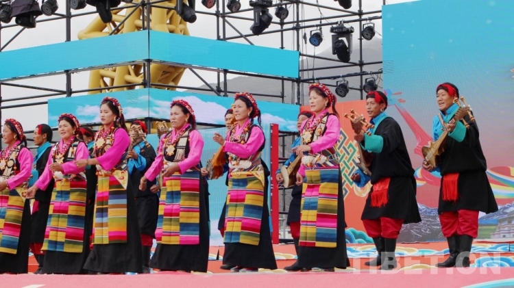中國西藏網(wǎng)訊 8月4日,西藏日喀則拉孜縣在縣堆諧人民廣場舉辦下轄曲瑪鄉(xiāng)、拉孜鎮(zhèn)、彭措林鄉(xiāng)、熱薩鄉(xiāng)、曲下鎮(zhèn)等11個(gè)鄉(xiāng)鎮(zhèn)文藝演出隊(duì)堆諧文藝比賽。各鄉(xiāng)鎮(zhèn)代表演員穿著氆氌藏裝,男士們頭戴“扎秀”、人手一把扎念琴,女士們頭戴圓形“巴珠”頭飾、腰間系上五彩邦典等盛裝出席比賽現(xiàn)場。
