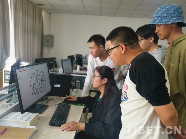 圖為擁措教授正在指導(dǎo)藏文古籍智能處理方向的研究生 受訪者供圖