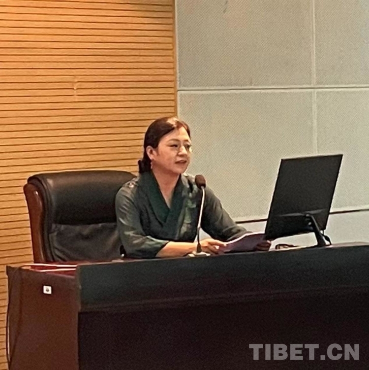 圖為青海省社會科學(xué)院藏學(xué)研究所副研究員罡拉卓瑪作主旨發(fā)言。攝影:鹿方舟