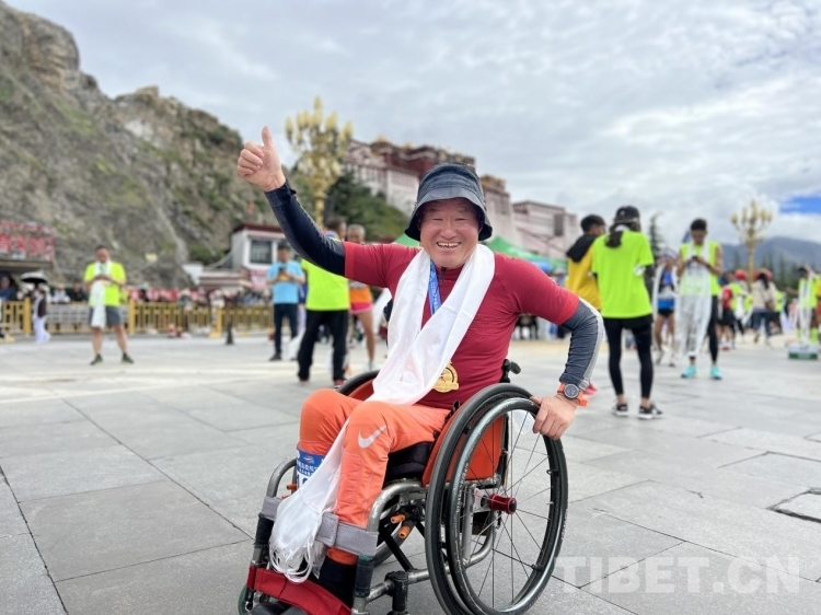 “馬拉松是一項(xiàng)極限運(yùn)動(dòng),這里是海拔最高的馬拉松比賽,我是本屆比賽殘疾人運(yùn)動(dòng)員中歲數(shù)最大的。沿途的風(fēng)景很美,后勤保障也做的很到位,希望有更多的殘疾人像我一樣走出來?!眮碜院幽下尻柕臍埣踩诉\(yùn)動(dòng)員商長斌今年61歲,完賽后他臉上洋溢著難以掩飾的笑容接來工作人員向他敬獻(xiàn)哈達(dá)和獎(jiǎng)牌。