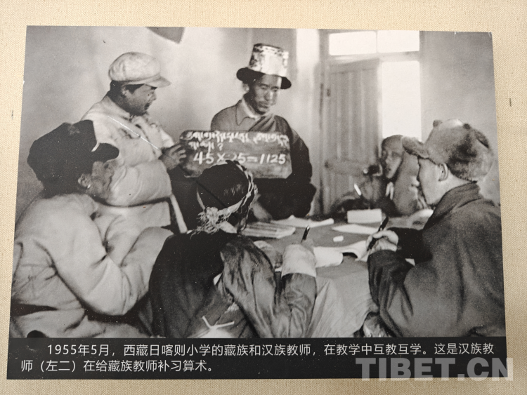 圖為圖片展現(xiàn)場老師帶領(lǐng)學(xué)生在觀摩學(xué)習(xí) 攝影:次旦拉姆