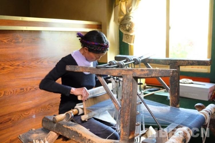 走進(jìn)氆氌紡織間,隊(duì)員們看到木質(zhì)的紡織機(jī)在吱嘎作響,工人左右手快速地配合,雙腳在幾個(gè)踏板間有條不紊地轉(zhuǎn)換,雙眼緊隨著雙手快速地游移目光,嫻熟程度令人嘆為觀止。