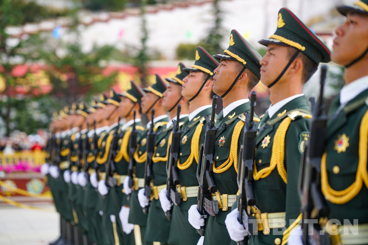 圖為10月1日西藏自治區(qū)慶祝中華人民共和國成立74周年“升國旗、唱國歌”儀式。 攝影:王淑