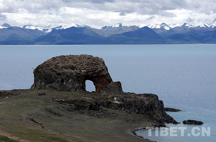 位于班戈縣納木錯(cuò)北岸的“圣象天門”景觀。遠(yuǎn)處是綿延的念青唐古拉山脈(唐召明2012年8月4日攝)