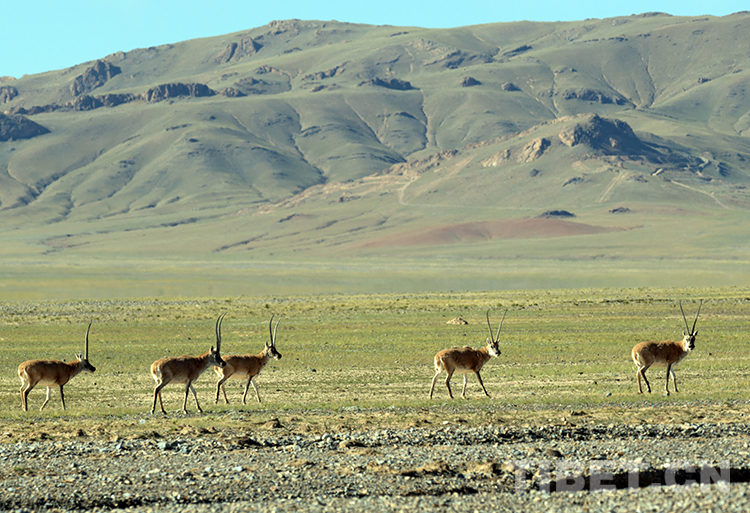 在羌塘國家級自然保護(hù)區(qū)悠閑漫步的國家一級保護(hù)動(dòng)物藏羚羊(唐召明2019年9月20日攝)