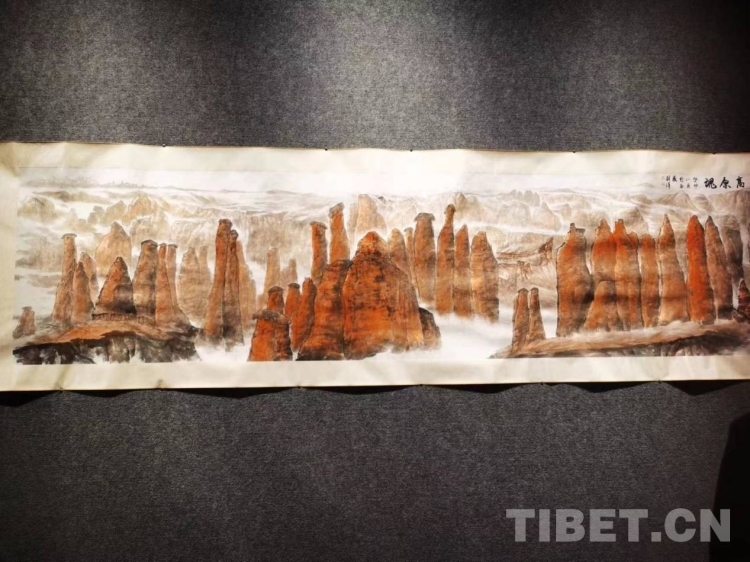 劉洋介紹,此次展覽旨在從建構(gòu)“西藏意象”入手,全景式展現(xiàn)大美西藏的精神家園,探究中華民族共同體意識(shí)建構(gòu)過程;用真實(shí)、真誠、有思考深度的藝術(shù)作品來回應(yīng)時(shí)代,從民族記憶中汲取力量;西藏歷史文化記憶的景觀符號(hào)是交往交流交融的生動(dòng)注腳,通過畫筆讓沉寂千年的主體再次說話。