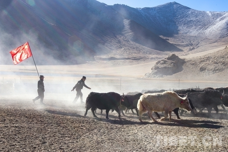 中國西藏網訊 季節(jié)變換、冬意漸濃,隨著草原牧場氣溫降低,西藏阿里地區(qū)日土縣又到了牧民轉場“冬窩子”的日子。10月28日,西藏阿里邊境管理支隊日土邊境派出所民警走進日土縣熱角村,“增援”派出所長期駐守在此的熱角村警務室,與牧民共同趕著牛羊群帶著物資,浩浩蕩蕩地從夏季牧場遷徙至冬季牧場。