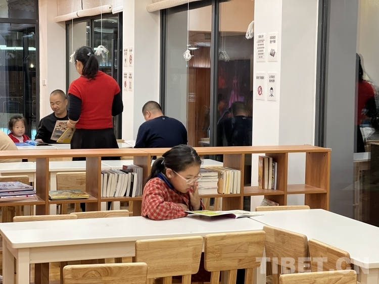 走進(jìn)蓮花書屋,一樓的書架和閱讀區(qū)幾乎坐滿了專心閱讀的大人小孩。“我喜歡來(lái)公園散步,這里環(huán)境很美。前天過(guò)來(lái)散步時(shí),看到我期待已久的書屋終于可以進(jìn)去看書了。家里的書都被我看完了,所以我這兩天一寫完作業(yè)就要來(lái)這里看新的書。”五年級(jí)的德央措姆在少兒閱讀區(qū)翻看書籍,她為能夠擁有這樣的讀書環(huán)境而感到很高興。