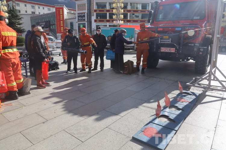 圖為林芝市森林消防支隊(duì)波密中隊(duì)在該縣廣場(chǎng)向市民科普日常消防安全知識(shí)