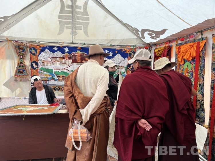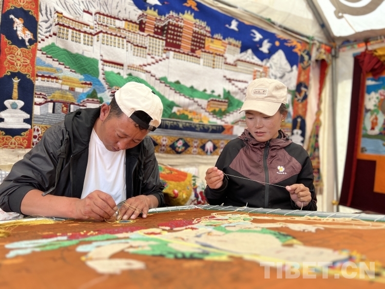 一針一線一幅畫,一時(shí)一日一春秋。在潔白的帳篷里,不時(shí)有游客進(jìn)出,欣賞著夫妻二人所制作的白度母珍珠唐卡、布達(dá)拉宮堆繡唐卡、“四講四愛”刺繡唐卡等精美作品。土旦旦增與次旦卓瑪手下不僅僅是飛針走線,更是“繡出”他們的美好生活。(中國西藏網(wǎng) 記者/德吉卓瑪)