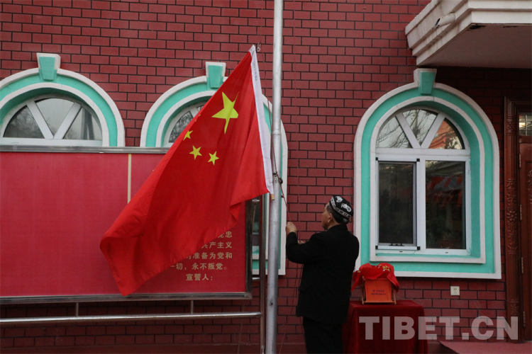 中國西藏網(wǎng)訊 日常的清晨,走在哈爾墩社區(qū)的街道上,推開街道拐角的一處紅色大門,就能看到一個(gè)平靜整潔的小院。沙勒克江·依明老人和他的老伴早早地站在小院中間,微笑著迎接走訪團(tuán)隊(duì)的到來。他們的右手邊是一根锃亮的銀色升旗桿,旗桿上已經(jīng)升起的五星紅旗在清晨的微風(fēng)里輕輕舒展開來。