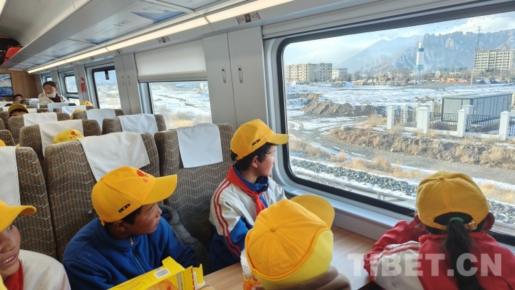 圖為多白鄉(xiāng)小學(xué)生乘坐高原動(dòng)車(chē)組列車(chē)前往拉薩