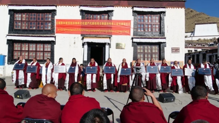 此次公布的第四批日喀則市級非遺代表性項(xiàng)目202項(xiàng)、代表性傳承人223項(xiàng),其中僅扎什倫布寺就有126個項(xiàng)目和142名傳承人。(中國西藏網(wǎng) 記者/趙振宇 圖片源自文化日喀則微信公眾號)