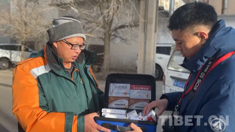 北京同心共鑄公益基金會(huì)志愿者為葛軍送上高原抗疫藥箱。陳明 攝