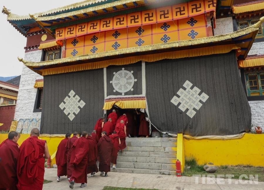 圖為西藏佛學(xué)院尼眾班學(xué)員抵達(dá)吉日寺