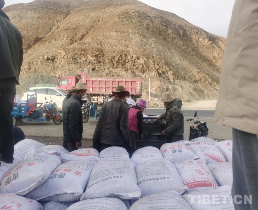 圖為駐村工作隊協(xié)調20噸有機肥并組織群眾領取
