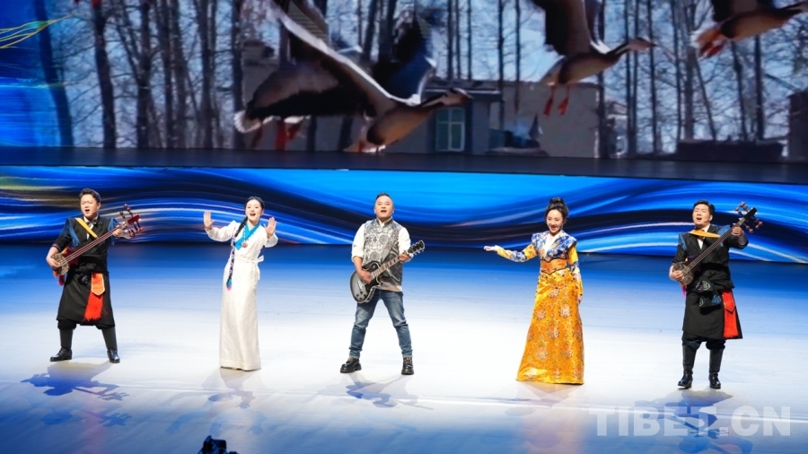 專題演出由開(kāi)場(chǎng)《祖國(guó)萬(wàn)歲》、上篇《尋夢(mèng)天湖》、下篇《歡歌拉薩》、尾聲《扎西德勒》四個(gè)部分構(gòu)成。通過(guò)充分挖掘拉薩的民俗風(fēng)情,將藏族歌舞、傳統(tǒng)說(shuō)唱藝術(shù)等元素巧妙地融入其中,用視頻展示的自然風(fēng)光、人文景觀作為輔助,優(yōu)化舞臺(tái)布局設(shè)計(jì),巧妙布景,為觀眾營(yíng)造一種身臨其境的感受,共同創(chuàng)造出一個(gè)充滿歡樂(lè)與感動(dòng)的氛圍,力圖讓更多的人了解拉薩、愛(ài)上拉薩,感受這座城市的獨(dú)特魅力和文化內(nèi)涵。此外,還邀請(qǐng)了容中爾甲、四郎貢布、次仁桑珠、益西卓瑪?shù)妊菟嚱缛耸抗嬷囇莩?,進(jìn)一步豐富和活躍專題演出氛圍。