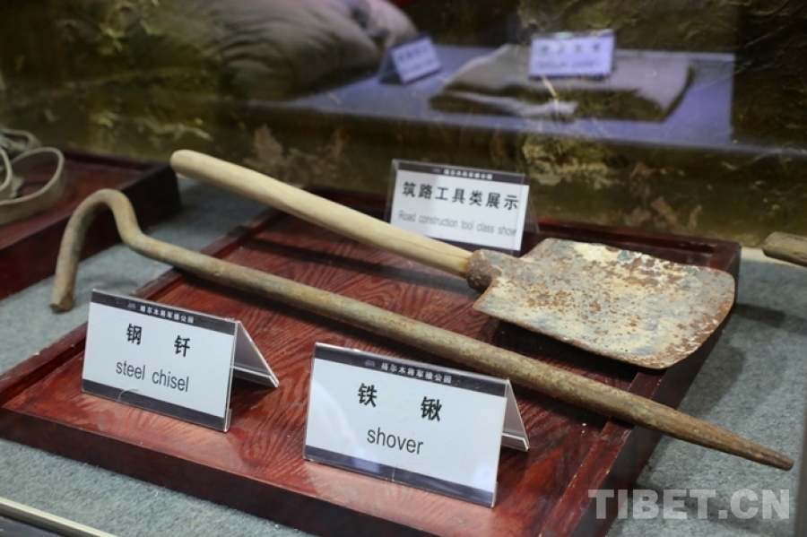 圖為青藏公路紀念館展出的鐵鍬等筑路工具 攝影:王茜