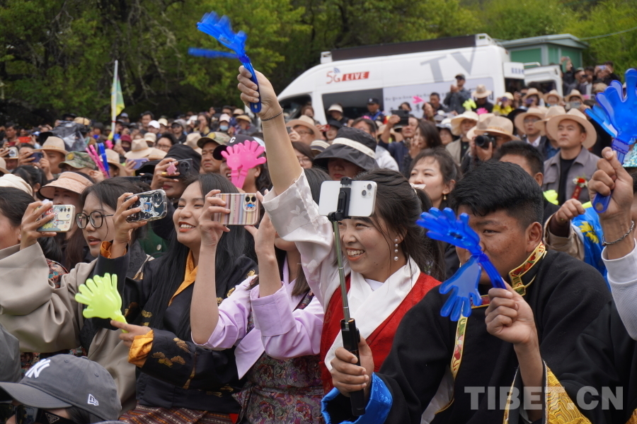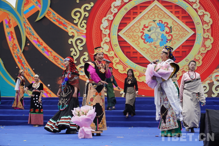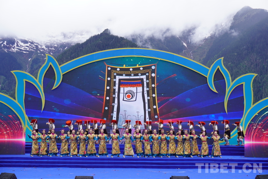 開幕式在群舞《丹旭承韻》中拉開序幕,《百鳥爭鳴》《圣潔米林·心之向往》《咱們西藏》《高原紅》《同心同行》等14個民俗特色歌舞依次上演,知名歌手容中爾甲、三農(nóng)主播阿佳旺姆等輪番上臺,為當(dāng)?shù)厝罕姾陀慰蛶硪粓鼍实亩嗝褡逄厣栉枋⒀?。悠揚(yáng)婉轉(zhuǎn)的民族歌曲、多姿多彩的非遺舞蹈、耳熟能詳?shù)某绷饕魳?,獲得現(xiàn)場掌聲、歡呼聲不斷。