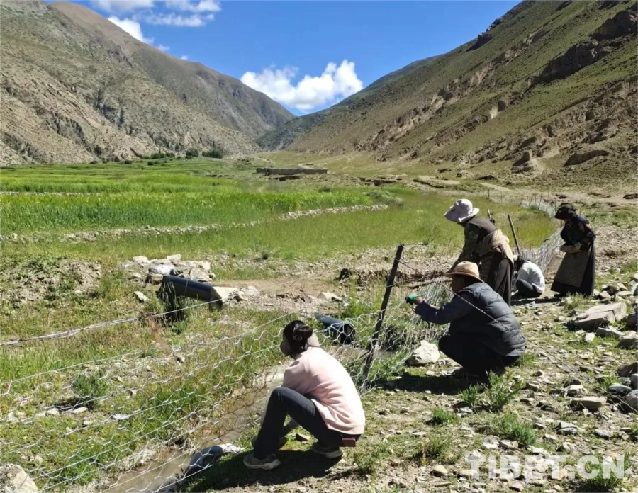 圖為駐村工作隊(duì)組織群眾加固當(dāng)?shù)夭輬?chǎng)防護(hù)網(wǎng)