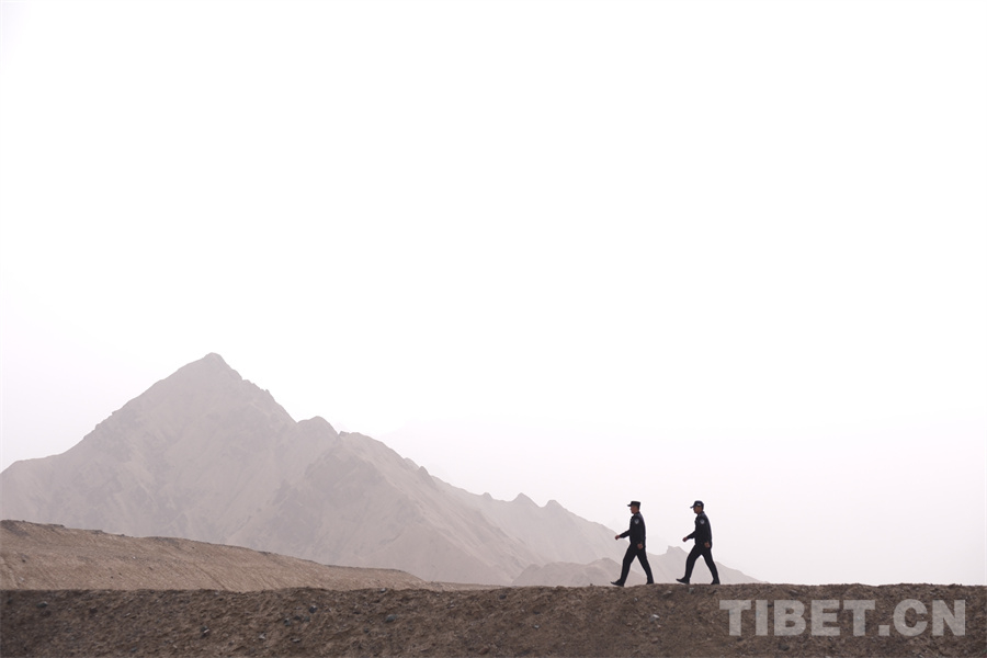 圖為巍巍昆侖,莽莽戈壁,天路衛(wèi)士在巡線路上