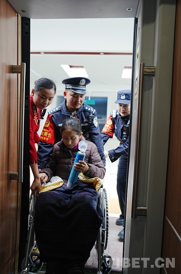 圖為民警護(hù)送高反乘客上車