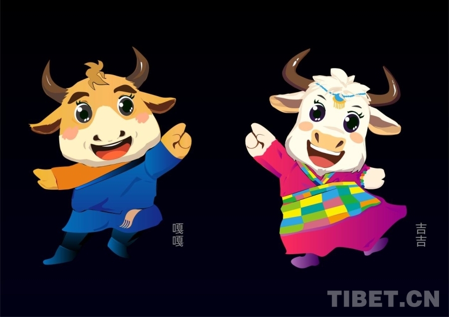 本屆農(nóng)牧民運動會的會徽和吉祥物設(shè)計獨具特色。會徽由“L”(拉)、“S”(薩)、人形、牛角、青稞組合變形而成,象征著激情運動員和農(nóng)牧民的日常生活,配色以紅、藍(lán)、綠和橙色為基色,體現(xiàn)了團(tuán)結(jié)向上、積極進(jìn)取的精神。吉祥物“嘎嘎”和“吉吉”,藏語意為“快樂”和“幸福”,分別代表穩(wěn)重的力量和熱情的活力。嘎嘎身著藍(lán)色的現(xiàn)代藏袍,吉吉穿著鮮艷的傳統(tǒng)藏裝,展示了藏族文化的包容開放和農(nóng)牧民的健康向上風(fēng)貌,營造熱烈歡快的運動會氛圍。